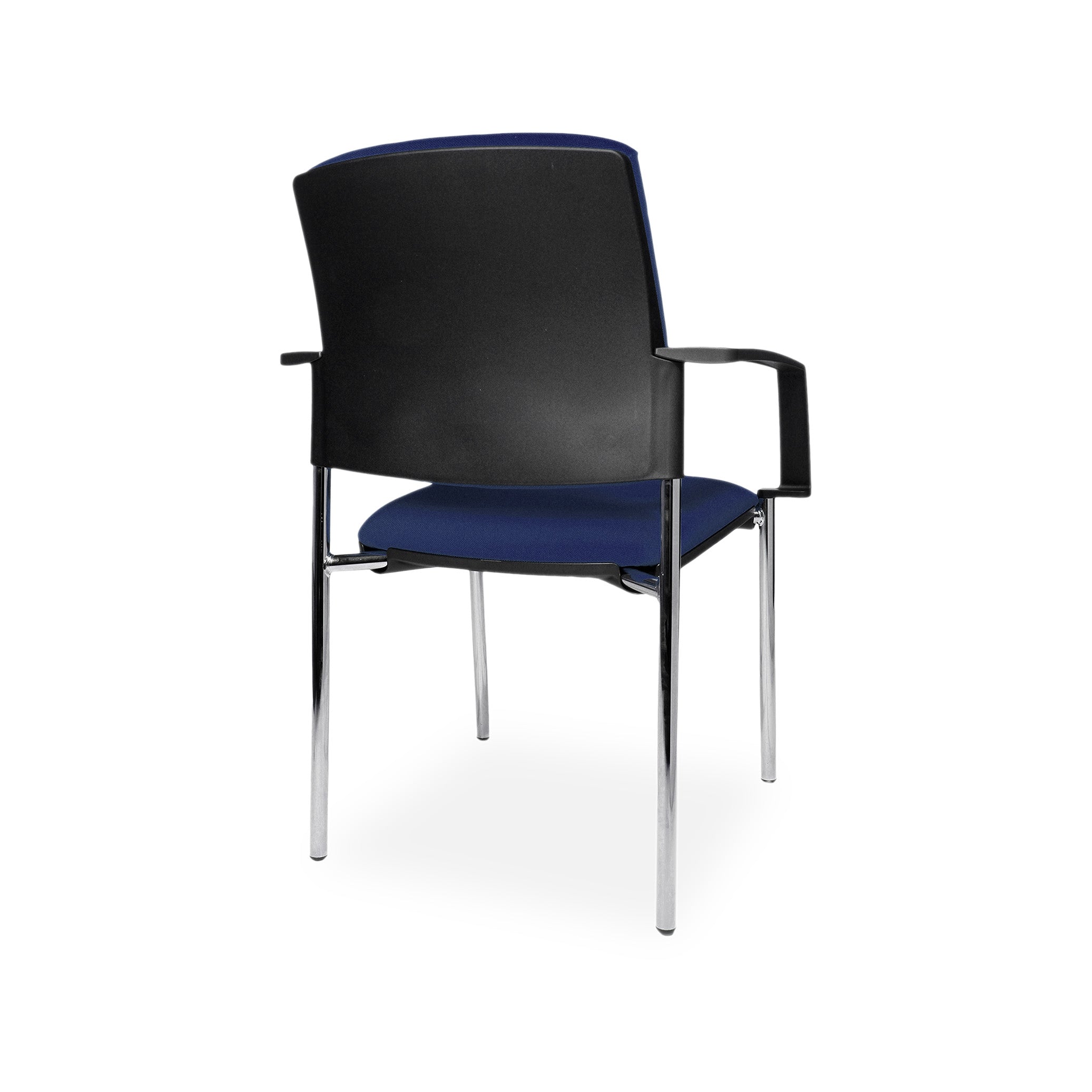 Für hohen Sitzkomfort sorgt die ergonomisch geformte und durchgehend gepolsterte Rückenlehne, deren Rückseite durch eine robuste Kunststoffabdeckung in Schwarz vor Stößen und Abrieb geschützt ist. Der bequeme Muldensitz ist ebenfalls gepolstert und die fest integrierten Armlehnen (optional auch ohne) bieten zusätzliche Entlastung. Dieses Modell trägt das GS-Zeichen für geprüfte Sicherheit und erfüllt damit alle relevanten Normen für den Einsatz im Objektbereich. Weitere Farben auf Anfrage.